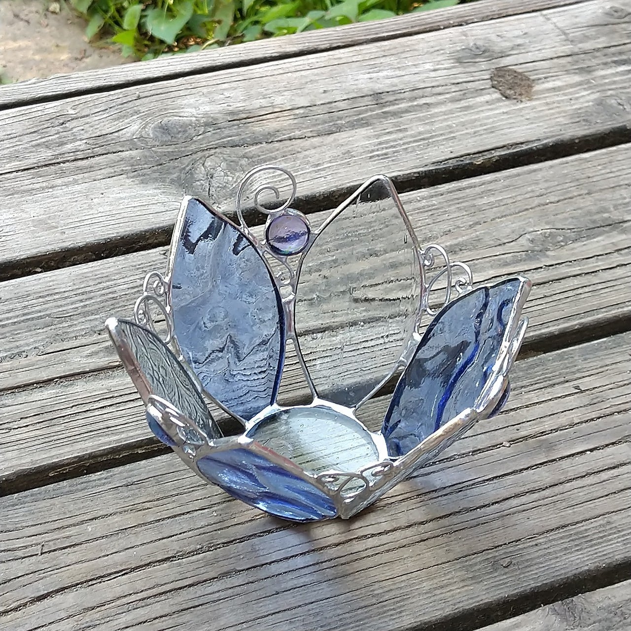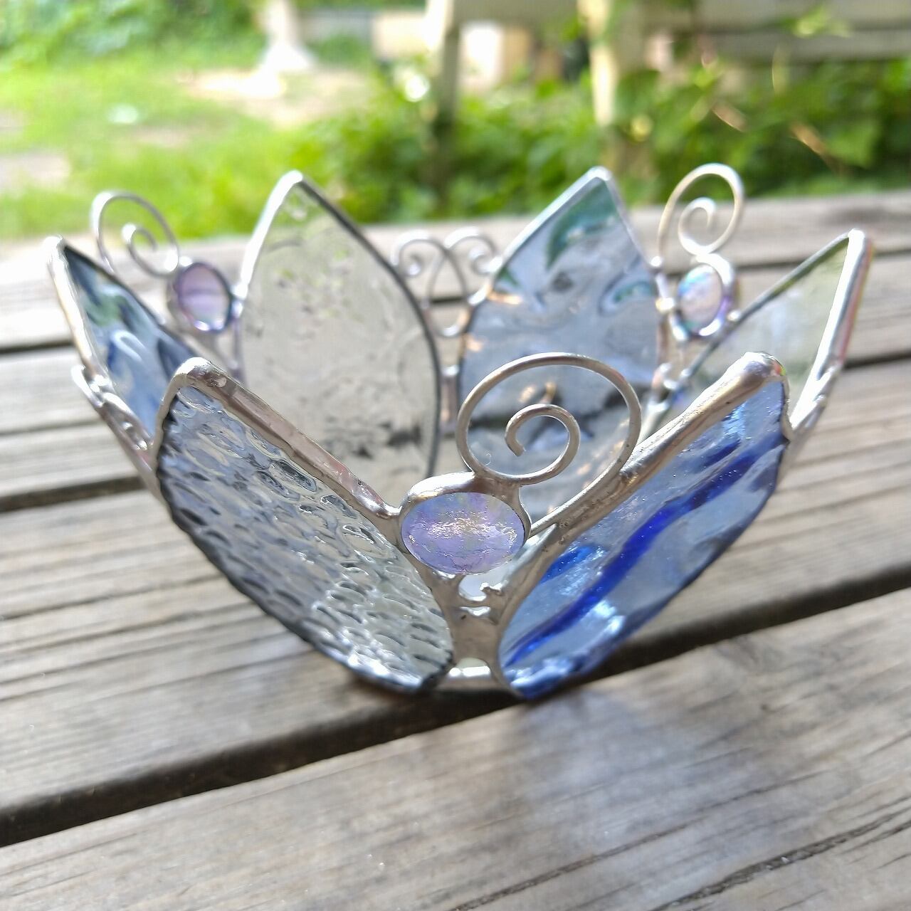 ステンドグラス・キャンドルホルダー・6面ブルー