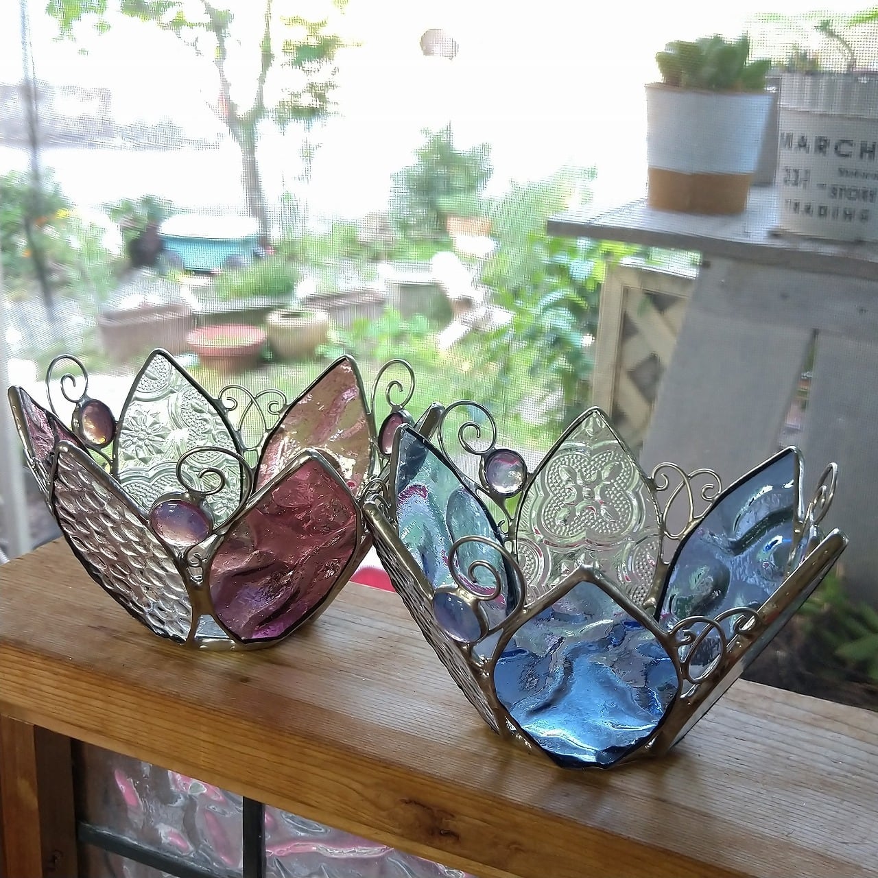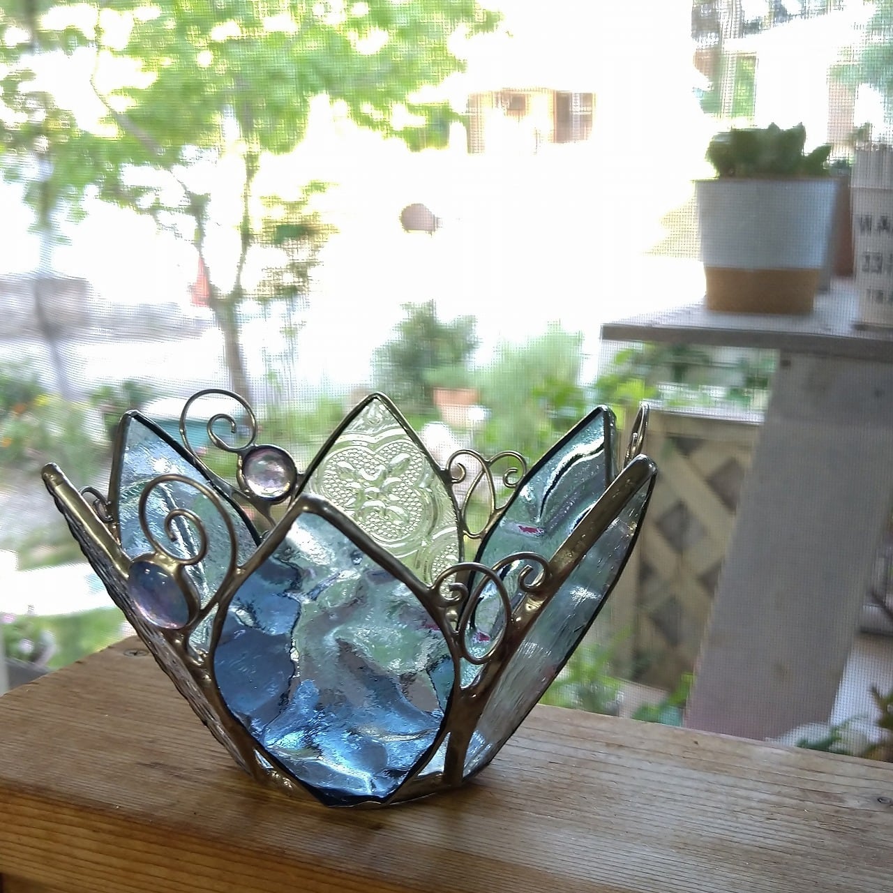 ステンドグラスで作った6面型のキャンドルホルダーです。