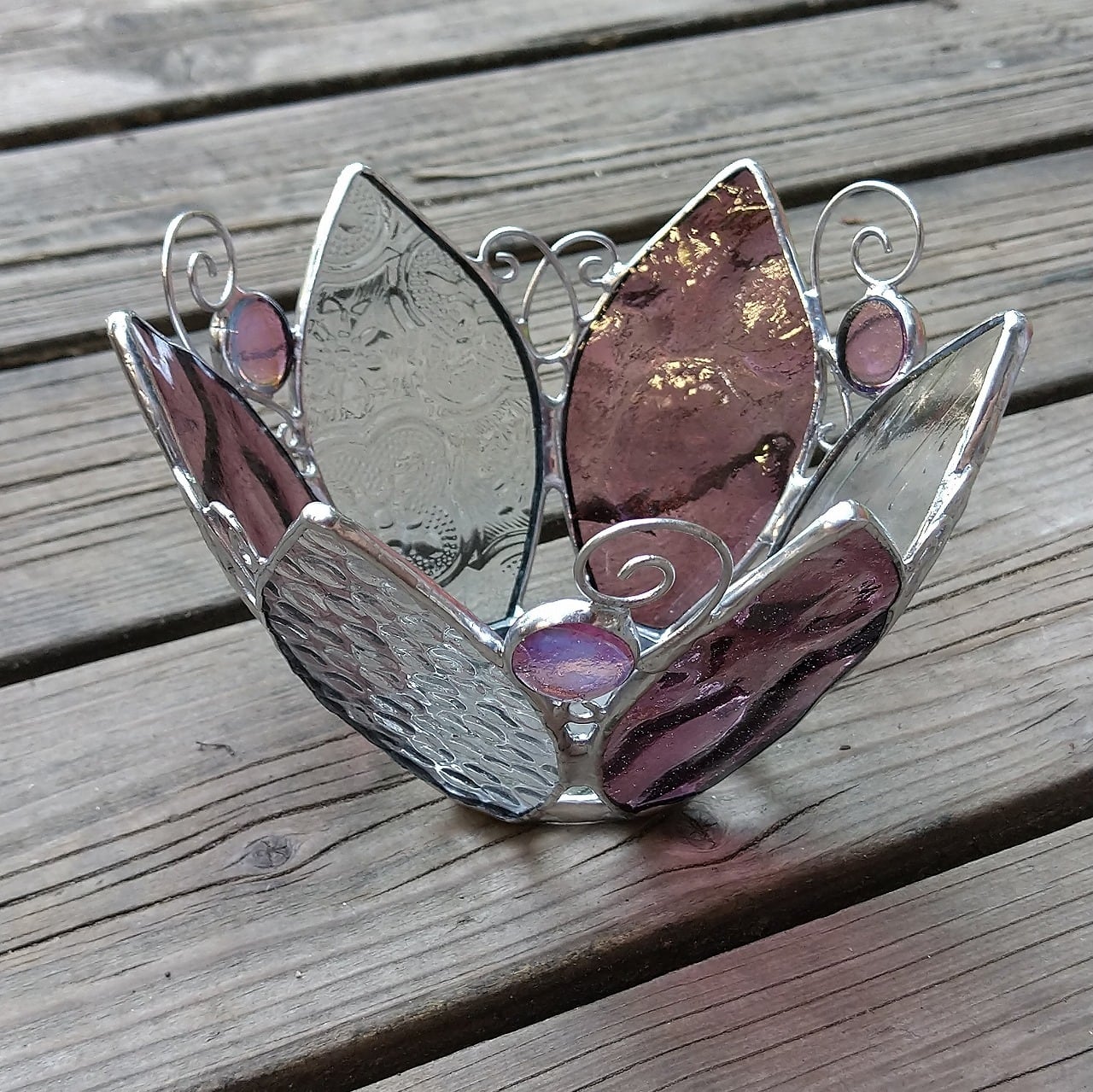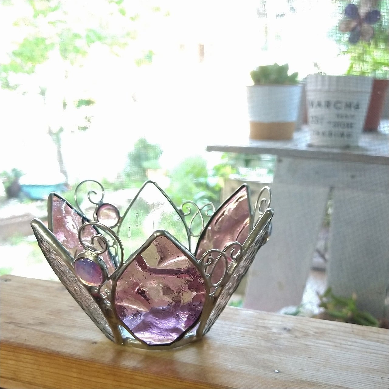 ステンドグラスで作った6面型のキャンドルホルダーです。