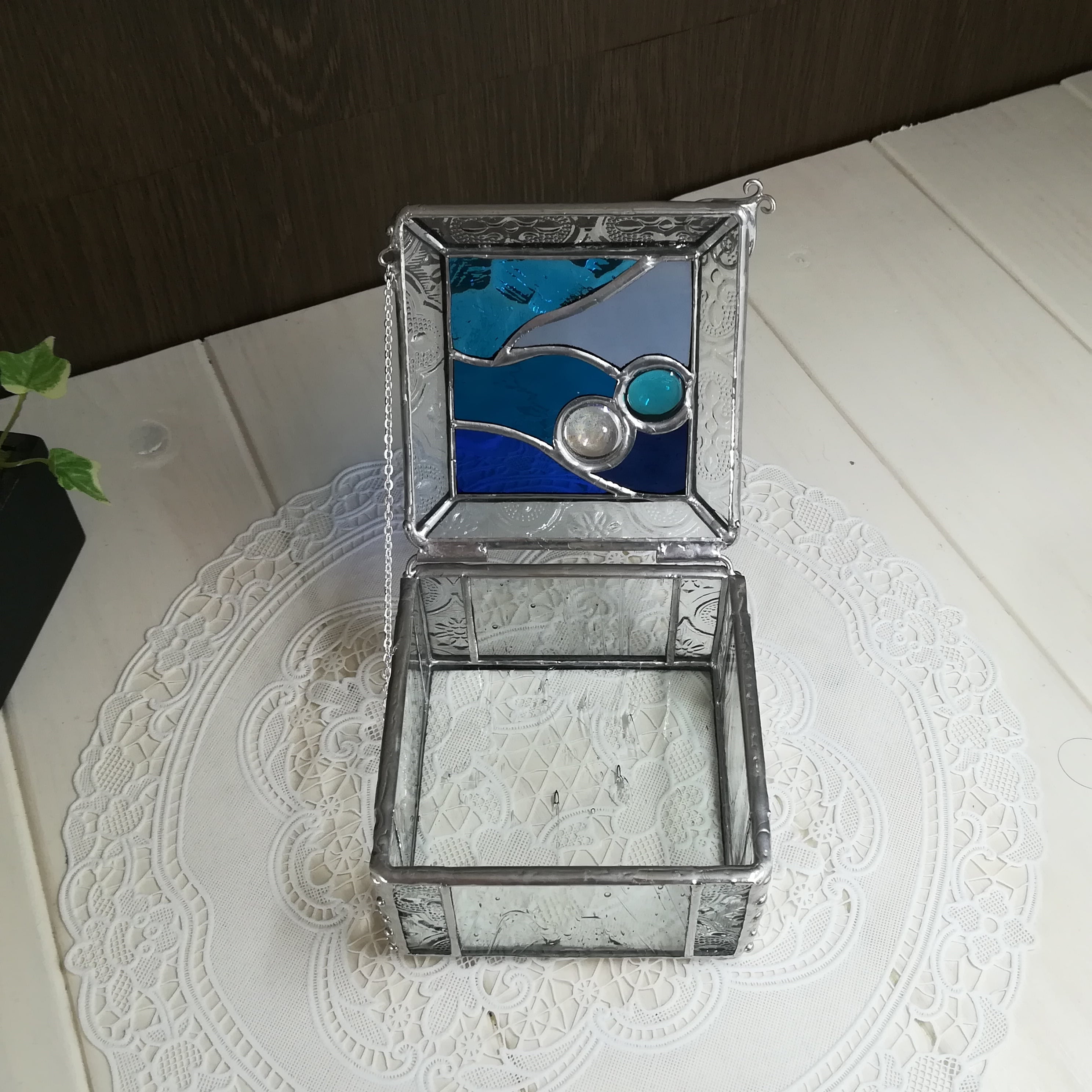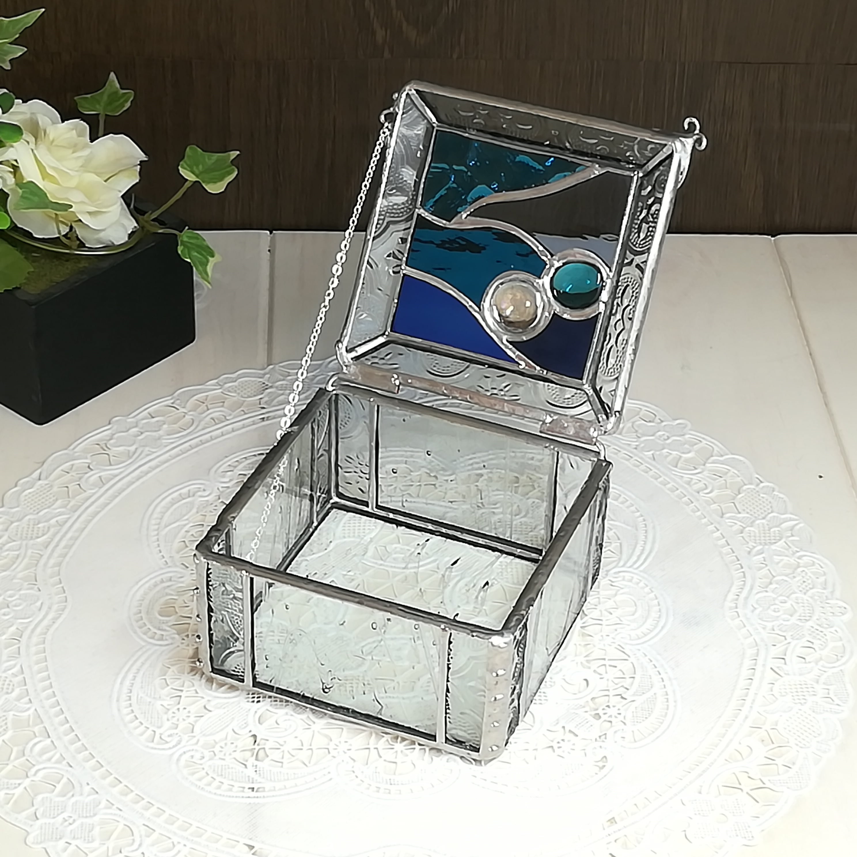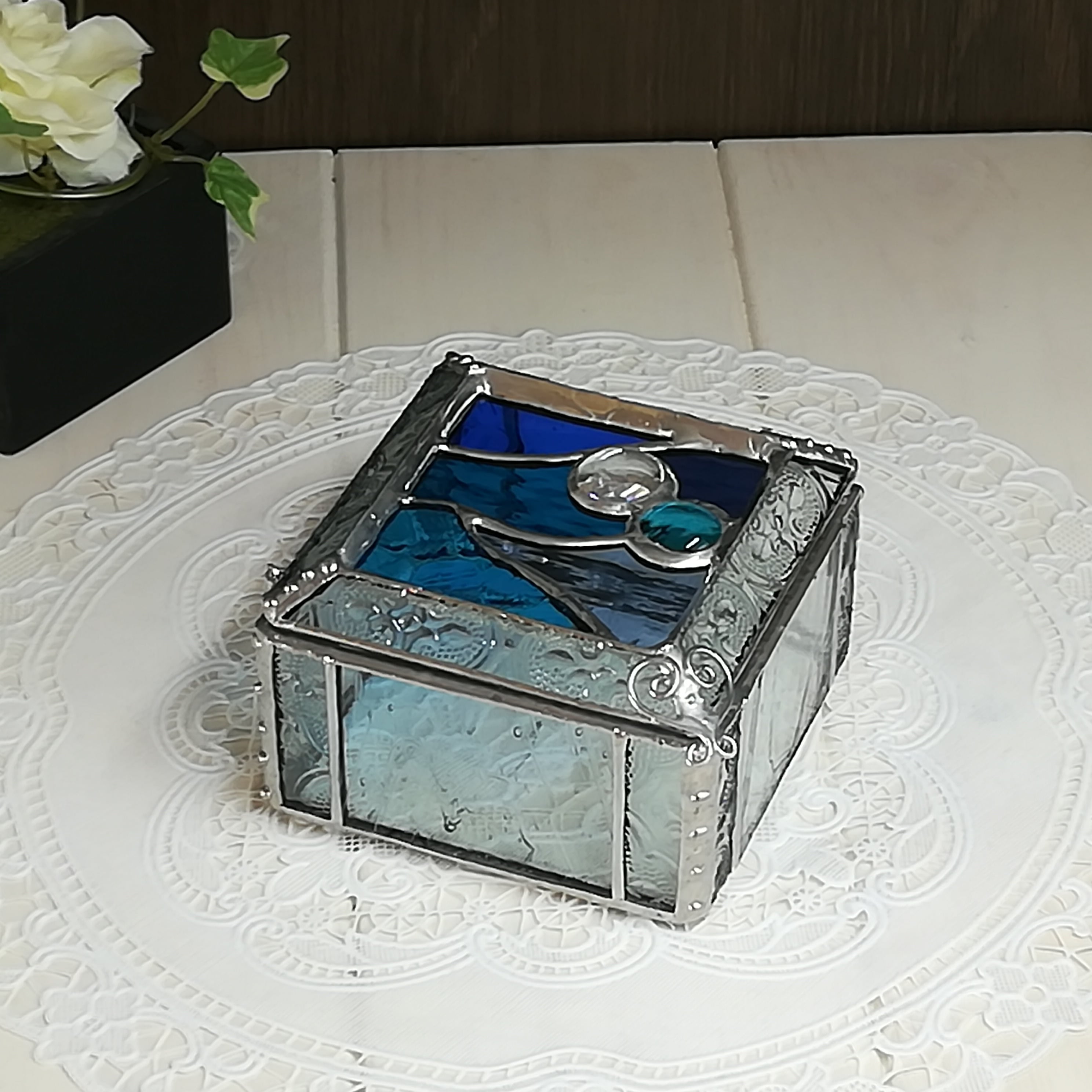 ステンドグラスボックス*小物入れ*バラエティブルー