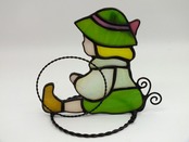 カードスタンド*かわいい帽子の女の子・グリーン ステンドグラス